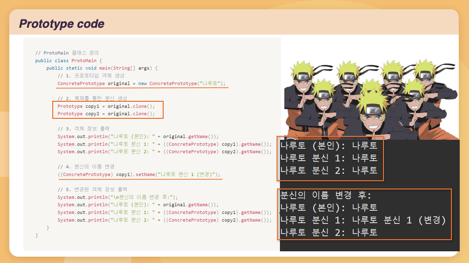 concreatePrototype 클래스의 인스턴스인 narutoOriginal(나루토 오리지널)을 생성합니다.