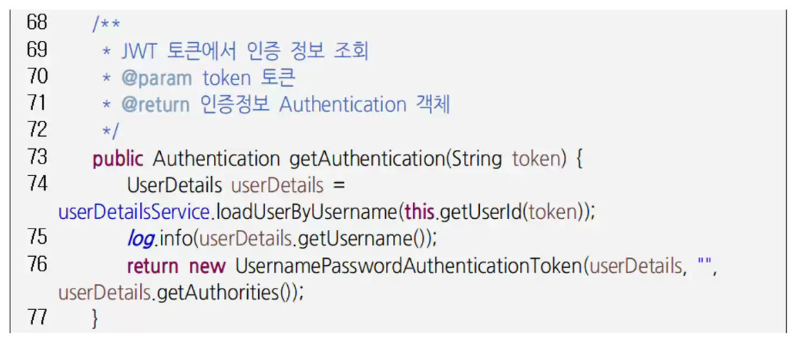 다시 다음을 요청할 때 request 넘기고, 토큰을 통해 인증이 됬는지 안됐는지 확인한다.